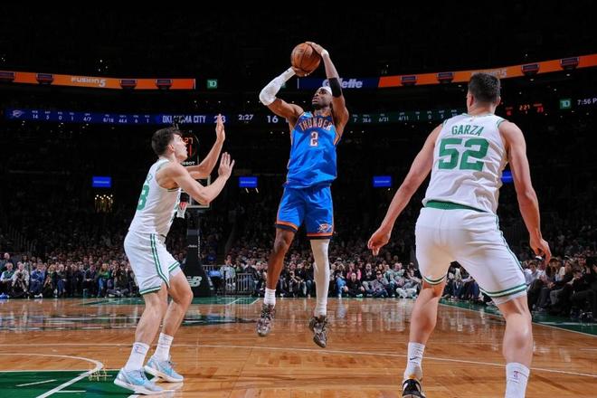 雷霆过去12场收获12连胜,凯尔特人上一场主场92-102输给森林狼,本赛季首次交锋雷霆主场104-102险胜凯尔特人。本场凯尔特人缺少武切维奇,雷霆缺少索伯。首节开局雷霆连续命中3记三分率先取得领先优势,且之后逐步压制凯尔特人扩大两位数领先优势,首节雷霆23中12,其中三分9中4,首节结束雷霆31-20领先凯尔特人。