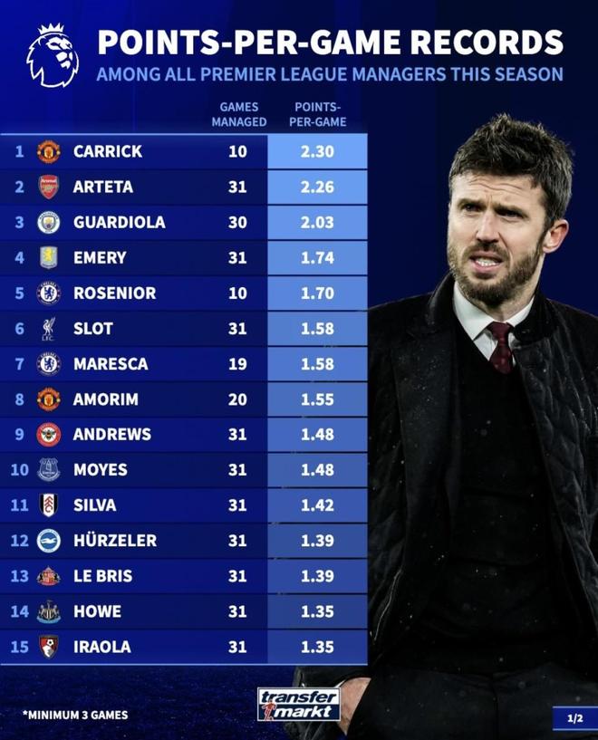反观卡里克的曼联,31轮拿55分排第三,纸面上看比维拉高,但看内容就悬了。56进球43失球,净胜球13个,这种防守质量离阿森纳和曼城差了好几个档次。卡里克接手后的10场拿2.30分确实亮眼,但别忘了,曼联整个赛季的底子并没强到能支撑“全季最强”的地步。卡里克更像是个优秀的“救火队员”,在中途接手后猛踩了一脚油门,把效率提了上来,但后劲如何还得另说。